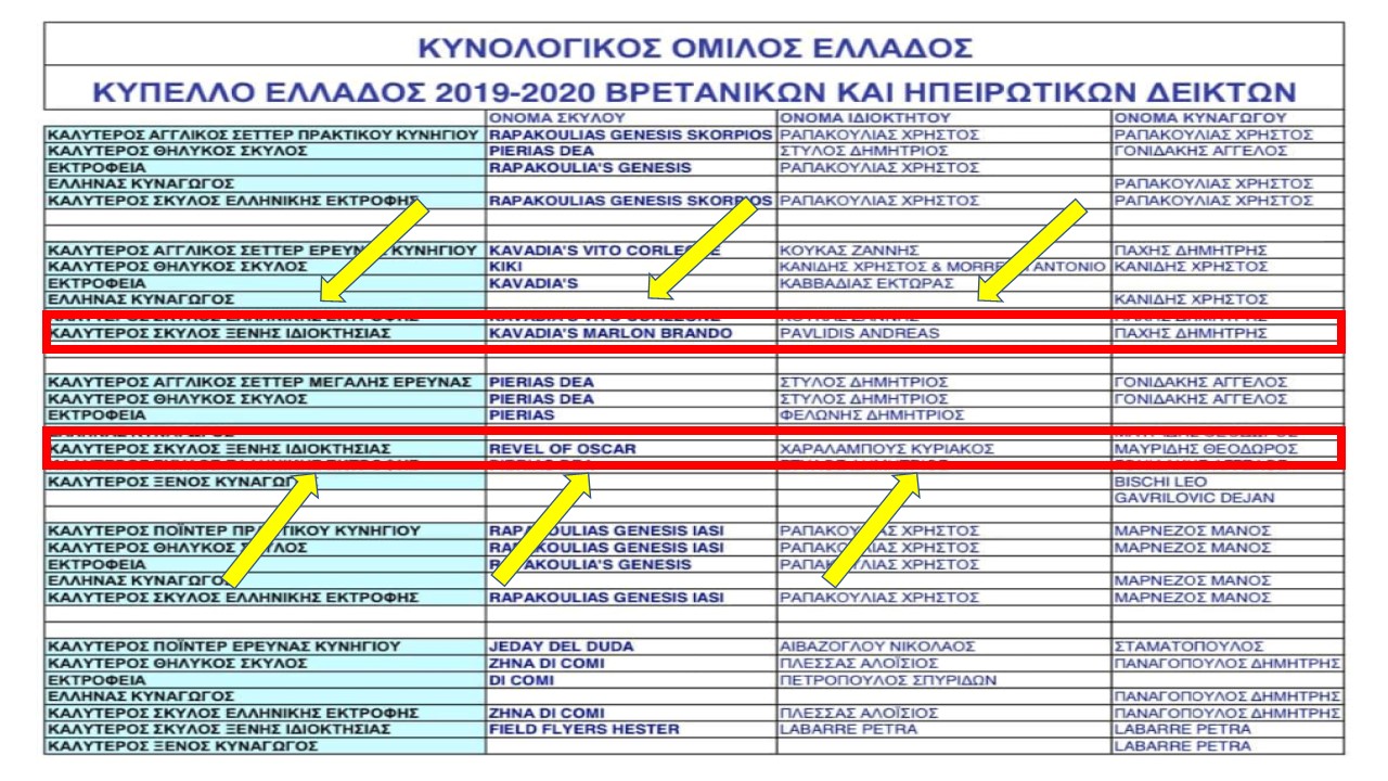 Το ΔΣ του Ομίλου μετά την ανακοίνωση , από τον Κυνολογικό Όμιλο Ελλάδος , των αποτελεσμάτων του Κυπέλου Ελλάδος 2019 – 2020 για τις Αγγλικές Φυλές Δεικτών ,θα ήθελε να συγχαρεί τα μέλη Ανδρέα Παυλίδη {με το Αγγλικό Σέττερ KAVADIAS MARLON BRANDO κυν. Δημήτρης Παχής} και τον Κυριάκο Χαραλάμπους {με το Αγγλικό Σέττερ REVEL of OSCAR κυν Θεόδωρος Μαυρίδης} για τις επιτυχίες τους ως τα Καλύτερα Σκυλιά Ξένης Ιδιοκτησίας στην Έρευνα Κυνηγίου και Μεγάλη Έρευνα αντίστοιχα και να τους ευχηθεί καλή συνέχεια στις κυνοφιλικές τους προσπάθειες.